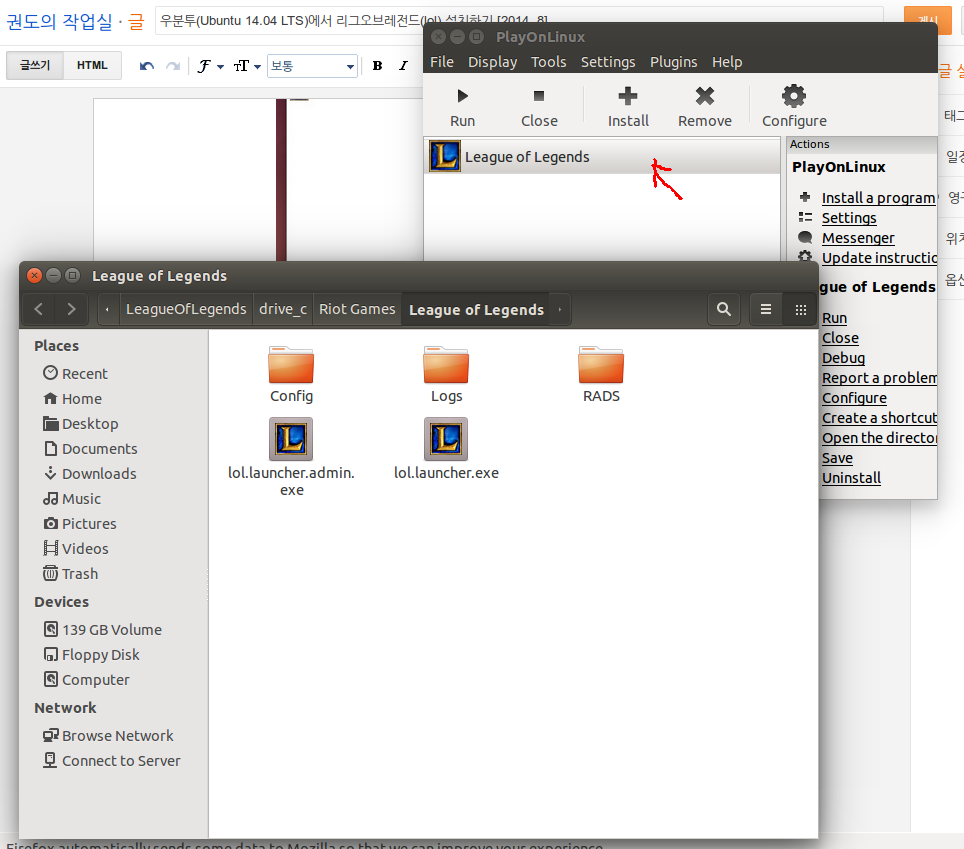 3. playonlinux 에서 리그오브레전트(lol)을 설치한다.
